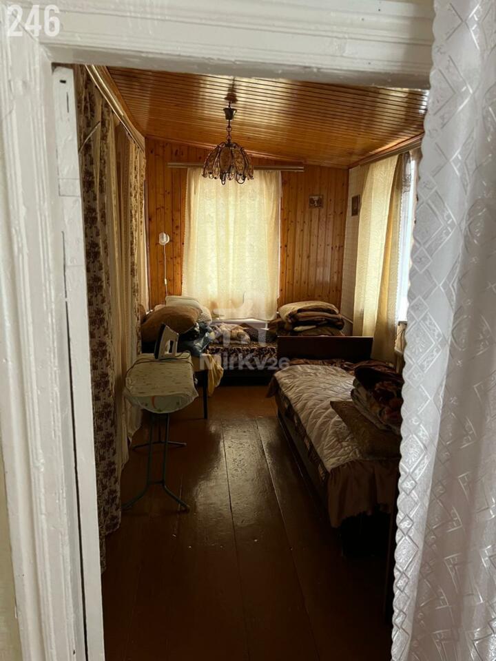 2.Дом 1990-х годов постройки; площадь 82,6м2; 4 комнаты, одна из них проходная; кухни нет; совмещенный санузел с ванной; котел; МПО; шифер; кирпичный; септик; горячая вода от котла